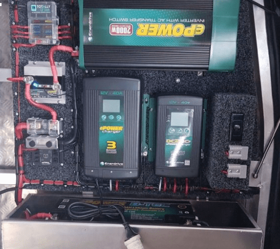 Our customer came in this week with discharged batteries in his caravan which was caused by his 12V fridge being connected directly to his house batteries. We recommended updating his electrical system with a 40amp Enerdrive DCDC system, with a 240V Enerdrive battery charger. He was also needing an Anderson and trailer plug. Our customer can now be confident going off grid caravanning.