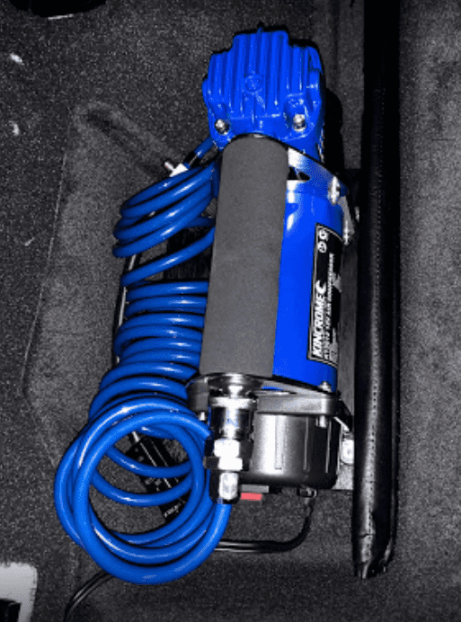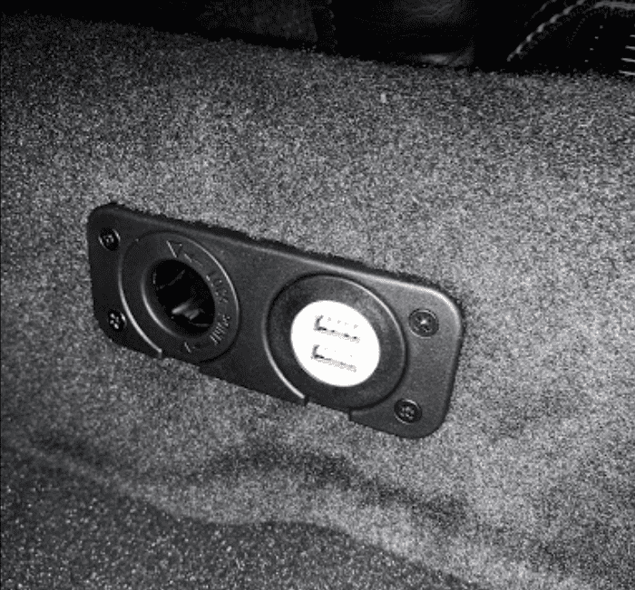 Our customer supplied us with a compressor which we installed under the other back seat. This was so he could easily pump up his tyres after off road driving. In the rear of the vehicle we provided some additional car accessories installation for the fridge and solar connections, as well as a few more USB and cigarette sockets.
